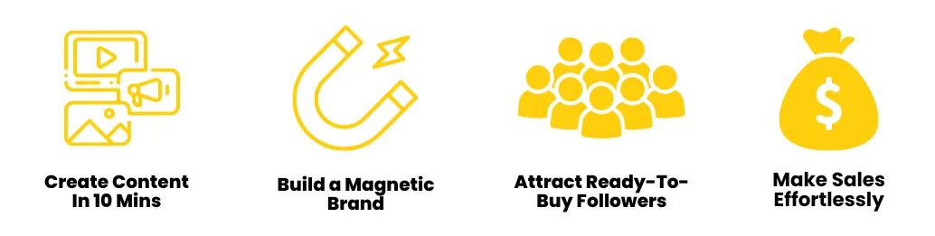 It’s the support you need to know exactly what to post,to attract ready-to-buy followers, build a magnetic AF personal brand and make sales effortlessly, in just 10 minutes a day.